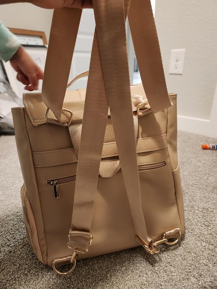 I'm preparing to welcome baby #5 into our family and got this backpack for my breastfeeding mama needs. I got it since it has space for breastpump and breastmilk cooling storage. It comes with a lot of compartments for storing bottles, diapers, and clothes. It comes with a separate changing pad and a separate bag that holds your breast milk for cooling. I'm amazed by the quality of this bag. For vegan leather, it's pretty thick and seems durable. Probably the only thing I would change about it would be the straps. The straps are actually extremely uncomfortable. I tried wearing it as it came, with the straps looped through in a straight line and the shoulder pads on, but the shoulder pads move a lot and they were actually hurting more. I removed the straps and put the straps in a cross position. This provided more support while carrying the backpack and didn't feel as uncomfortable. Overall, I do believe this is a good diaper bag for a breastfeeding mama that can get a lot of use out of it while being out and about.